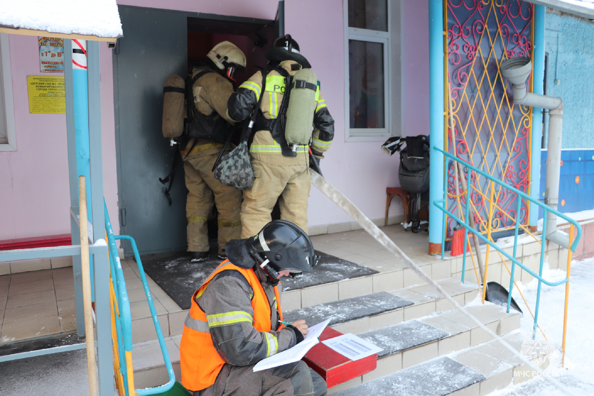 В детском саду «Медвежонок» состоялось пожарно-тактическое занятие, целью которого была отработка навыков эвакуации персонала и ликвидация условного пожара.