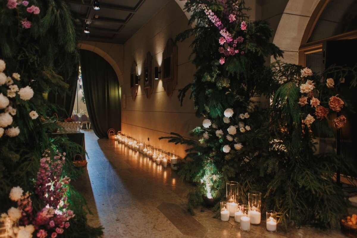 Зима идеально подчёркивает готическую эстетику: холодный воздух, приглушённый свет, ранние сумерки и ощущение тайны создают естественный фон для стиля dark romance. Но чтобы такая свадьба выглядела красиво и дорого, а не мрачно и отталкивающе, важно продумать каждый визуальный акцент. Готическая свадьба – это прежде всего история о любви, поданной через драму и контраст. Ошибка многих пар заключается в уходе в чрезмерную «тьму»: символику смерти, агрессивные образы, перегруженный декор. Настоящий dark romance работает иначе. Здесь важны эмоции, глубина и визуальная поэзия. Тьма должна подчёркивать нежность, а не подавлять её. Чёрное платье невесты – центральный элемент образа, именно оно задаёт общее настроение всей свадьбы и формирует первое впечатление. Такой выбор сразу заявляет о концепции и требует особенно продуманного подхода к деталям. Наиболее выигрышно смотрятся сложные и благородные фактуры: бархат, матовый шёлк, тонкое кружево, воздушная органза. Эти материалы создают глуби