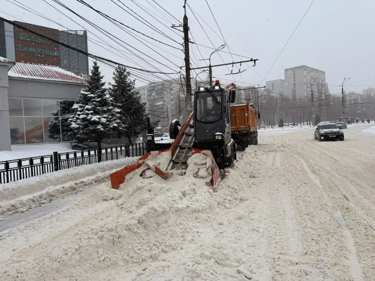 Работа по очистке города от снега идет в условиях сильных морозов в круглосуточном режиме