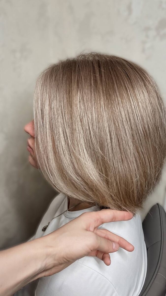 ! Плотный срез каре — это красиво, но для техники иногда бывает «тяжеловат». Перед окрашиванием я слегка прошлась филлировочными ножницами по концам, чтобы создать лёгкую слоистость внутри массы волос. После этого Air Touch пошёл как по маслу! Воздух фена легко проникал между прядями, создавая те самые мягкие, дымчатые переходы, а нежная текстура пепельно-фиолетового тонера завершила образ. Иногда магия кроется не только в цвете, но и в умении подготовить волосы к преображению #эйртач #airtouch #профессиональныйприем #окрашиваниенакаре #парикмахерскийлайфхак #пепельныйблонд #воздушноекасание #красивыеволосы #нижнийновгород