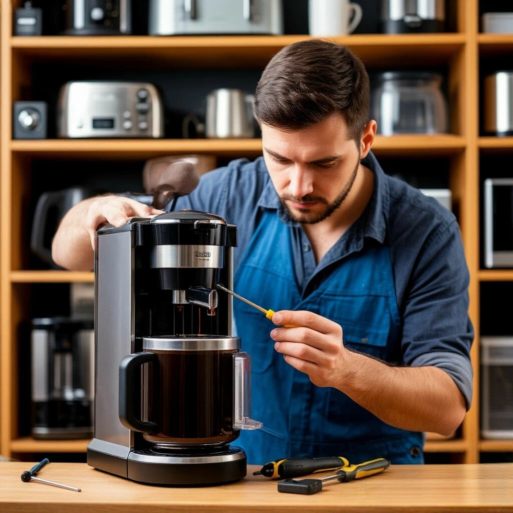 Кофеварка работает не корректно. Из всего списка сервисов по ремонту бытовой техники назойливо выскакивает один телефон. Стали звонить. Очень вежливо, доброжелательно и благодушно, да, всё сделаем, сами заберём, сами привезём. Ах, оплата , такие пустяки, согласуем.