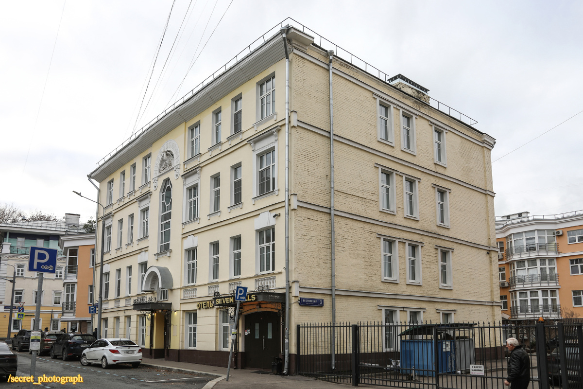 Текст и фото: "Тайный фотограф Москвы" Еще один архитектурный герой родом из Пестовского переулка стоит аккурат напротив усадьбы Рубцова – Моргуновых, о которой я рассказал вчера. Этот четырехэтажный доходный дом в некотором роде знаменитость и до сих пор большая загадка для всех, кто интересуется архитектурой. Его в 1912-1914 годах выстроил архитектор Сергей Матвеевич Жаров, окончивший с малой серебряной медалью Московское училище живописи, ваяния и зодчества. А спроектировал он этот доходник для своего отца, купца Матвея Тимофеевича Жарова и брата Василия Матвеевича, члена правления Торгового дома братьев Хлудовых. С виду здание в стиле неоклассицизма вышло довольно строгим, из немногих его украшений – замковые камни над окнами и вставки, имитирующие ограждения балконов. Но главный элемент декора… Он восседает по центру четвертого этажа, над остеклением лестничных маршей. И вот о том, как и почему он здесь угнездился, нет определенного мнения. Одни говорят, что то ли сам архитектор,