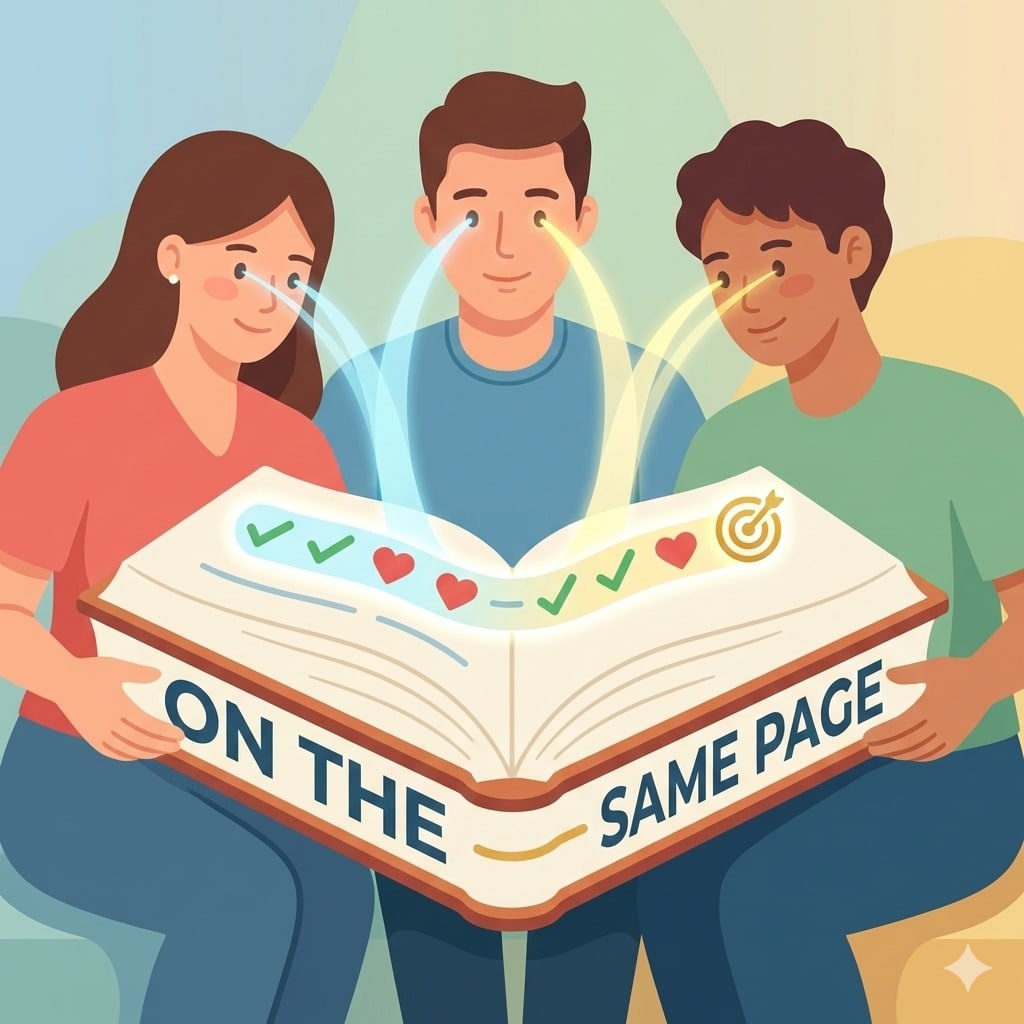 📌 СЛОВО: TO BE ON THE SAME PAGE Произношение: [bi ɒn ðə seɪm peɪʤ] Значение: быть на одной волне, понимать друг друга, иметь общее мнение Примеры: ✅ Let's discuss this to make sure we're on the same page. (Давайте обсудим, чтобы убедиться, что мы понимаем друг друга.) ✅ The team needs to be on the same page about the project goals. (Команда должна быть на одной волне относительно целей проекта.) ⚡️ #GrammarTip: КАК ИСПОЛЬЗОВАТЬ В РЕЧИ? С предлогом ABOUT: ✅ We're on the same page about the deadline. ✅ Are we on the same page about this plan? В вопросах: ✅ Are we on the same page? (Мы на одной волне?) ✅ Do you think we're on the same page? (Думаешь, мы понимаем друг друга?) В отрицании: ✅ We're not on the same page about this. ✅ I don't think we're on the same page. 🎯 ЗАПОМНИТЬ ЛЕГКО: Представьте, что читаете одну и ту же страницу (page) книги → видите одинаковую информацию → понимаете друг друга! 🎮 ВАША ОЧЕРЕДЬ: "With my friends/family/colleagues, we're always on the same page