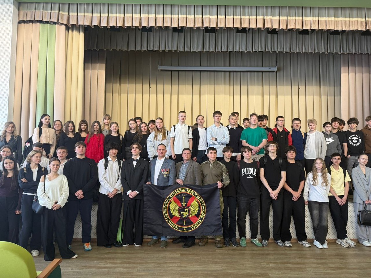 Представители Уральского союза ветеранов СВО УГЛТУ — Александр Карпов, Владимир Абаимов и Данил Шамиданов — встретились со школьниками МАОУ