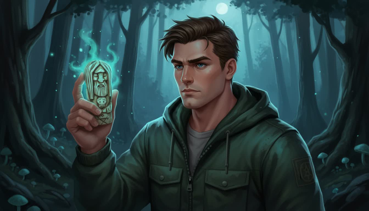 Алексей стоял, чувствуя, как страх перехватывает горло. Он не знал молитв, не знал обрядов. Он знал только вину. «Забирай, - прошептал он, и его голос сорвался, беззвучный и жалкий в этой всепоглощающей тишине. Он выбросил руку вперёд, разжал закоченевшие пальцы. Маленькая тёмная фигурка упала на влажный мох у подножия одного из столбов с глухим, негромким стуком, который прозвучал неестественно громко. - Я не хотел зла. Мы не хотели. Просто… пропусти».