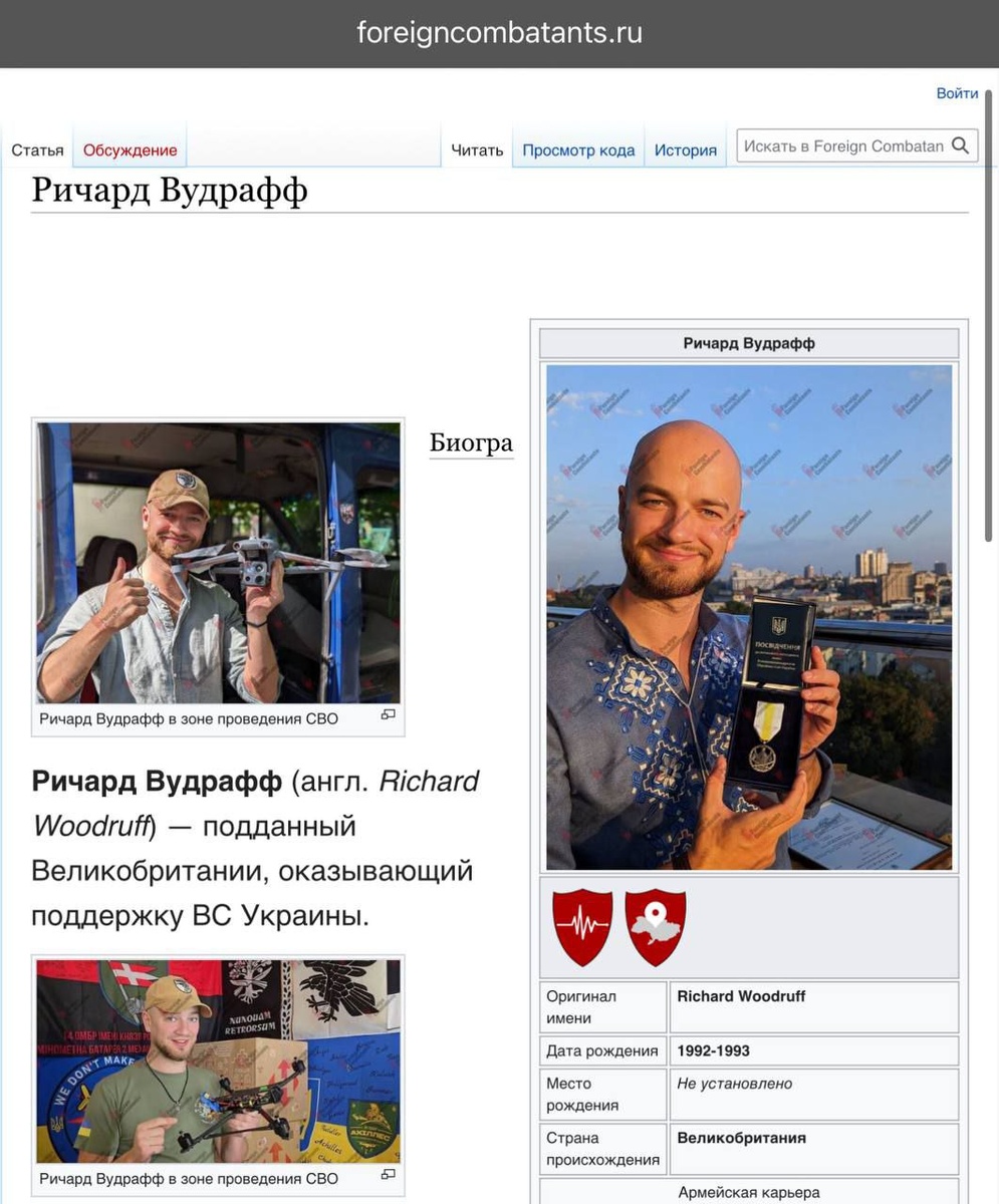 🇬🇧🇺🇦Узнав о его намерении поехать воевать против России, мать назвала его идиотом Когда мотаться по бесконечным путешествиям надоело, британец Ричард Вудрафф, 1992-1993 г.р., решил заделаться «волонтёром» на Украине. Семья покрутила пальцем у виска, но жажда кортизола несла Вудраффа во Львов. Поначалу он был сотрудником полевых кухонь и снабжал продовольствием киевских боевиков через НКО Front Line Kit, вербовал иностранцев и собирал деньги. Донаты, собранные на еду, шли активно на дроны-убийцы. К декабрю 2023 через НКО Angel of Life Вудрафф передал боевикам помощи примерно на 400 000$, и большая часть этой суммы пришлась на БПЛА. Вместе с лидером этой НКО Эрнестом Полянским они наладили производство FPV-дронов на Украине. Утверждали, что передали несколько тысяч БПЛА ВСУ. Во время одной из доставок получил ранение. Дроны британец отправлял через компанию «Нова пошта», о чём прямо сообщал в соцсетях и интервью. В январе 2026, комментируя удар ВС РФ по одному из её терминалов, об