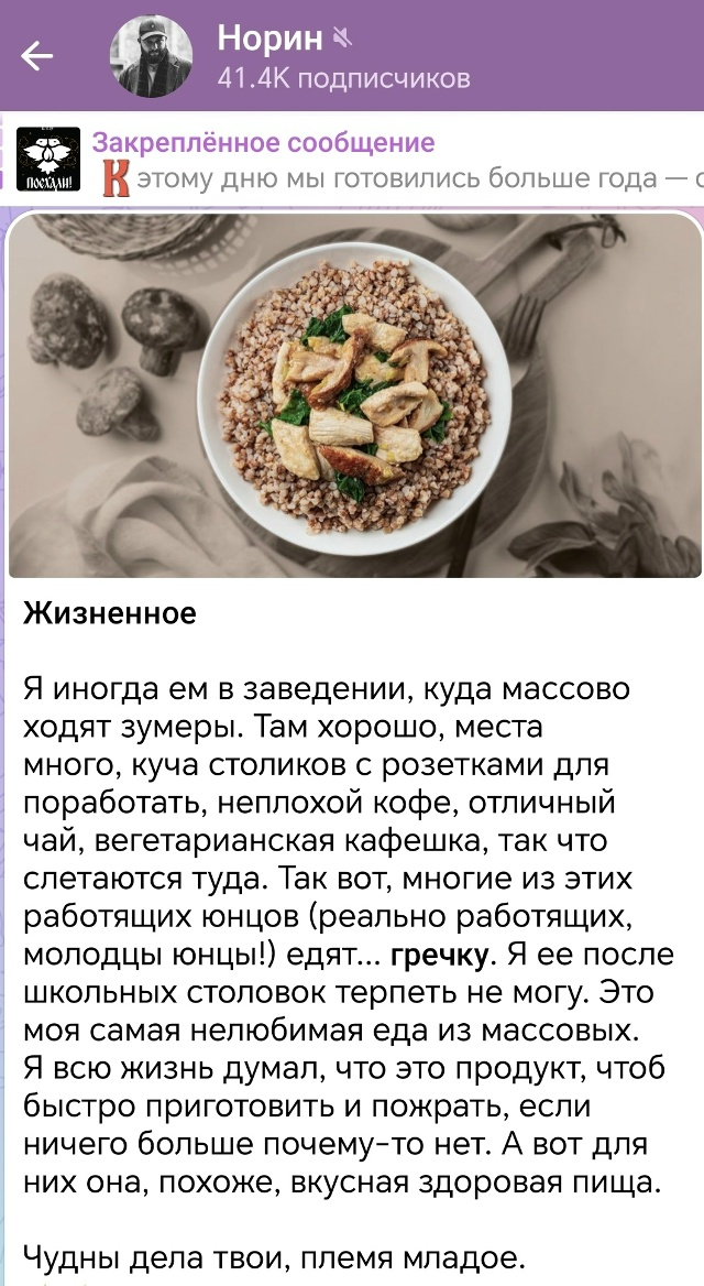 Ахтунг, товарищи. У нас тут самая настоящая внештатная ситуация. Евгений Норин - друг Котоимпериума и мастер русской словесности - покусился на святая-святых отечественного туризма - гречневую кашу! Евгений признался, что не любит гречку, и удивился популярности гречки среди современной молодёжи. Чем нанес мне, моей жене и старшей дочери, которая может есть гречу 3 раза в день, игнорируя картошку фри, страшную моральную травму.