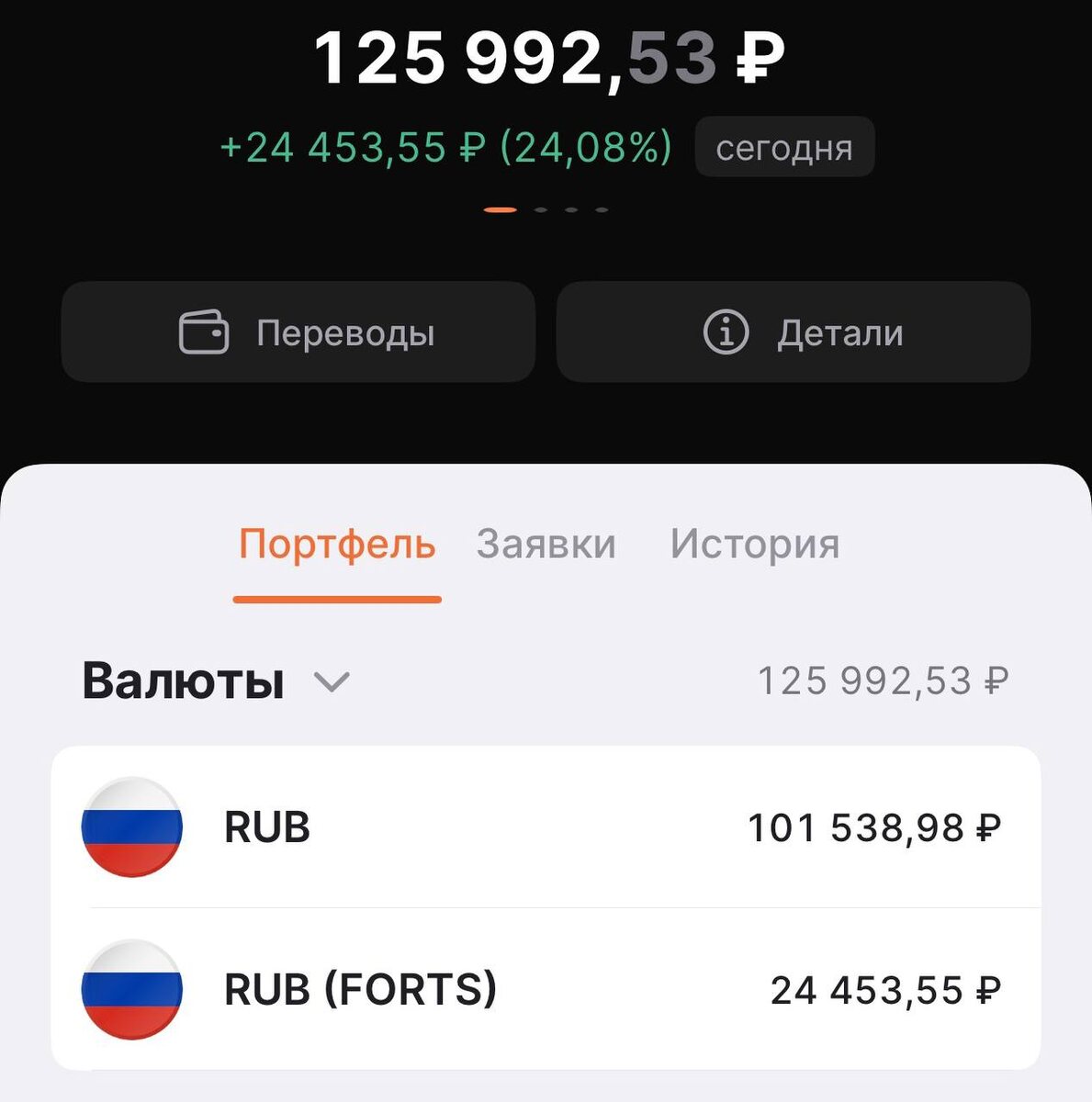 Итог + четверть к депо. (Тут специально начали с небольшой понятной для всех суммы в 100 т р). В принципе, уже можно не торговать 🫡😁 6000% годовых, как никак 😎