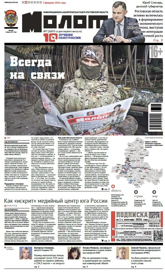» 📌Агрономы песчаных карьеров На Дону на месте старого песчаного карьера создано три экспериментальных участка с искусственной почвой. Исследования ученых направлены на то, чтобы ввести в оборот почвы земельных участков, подвергшихся антропогенному воздействию. Подробности и пояснительная инфографика — в тексте Ирины Варламовой. 📌Всегда на связи Донские единороссы доставили груз помощи подразделениям, ведущим бои на Донецком и Константиновском направлениях СВО. Его частью стали номера газеты «Молот». Корреспондент Вера Волошинова сочла за честь войти в состав этой гуманитарной миссии. Ее репортаж читайте на первой полосе. 📌Тандем штанги и белого халата Травматолог-ортопед из Ростова Игорь Дацкевич занял первое место на Чемпионате мира по пауэрлифтингу, прошедшем в Москве. Как ему удалось перекинуть мостик между этими совершенно разными ипостасями, выяснила Виктория Головко. 📌Кум в деле На бирже контактов с производственными компаниями, которые прибыли в Ростовскую область с биз