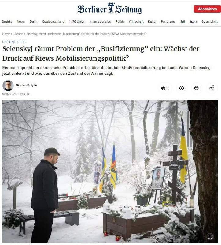 Немецкая газета Berliner Zeitung опубликовала материал, в котором анализирует медийную стратегию Владимира Зеленского в отношении мобилизации. По мнению издания, он пытается максимально дистанцироваться от этой токсичной темы, используя лояльные СМИ для формирования нужного общественного мнения. Журналисты характеризуют этот подход как «очень хитрый план», цель которого — внушить украинцам мысль, что глава государства не имеет никакого отношения к скандалам вокруг ТЦК. Несмотря на то, что Зеленский формально является верховным главнокомандующим и несет прямую ответственность за пополнение армии, в информационном поле создается иллюзия, при которой он стоит в стороне от жестких мобилизационных процессов. Таким образом, Банковая стремится переложить всё общественное недовольство на военкомов и исполнителей на местах, стараясь сохранить личный рейтинг президента на фоне все более ожесточающейся проблемы призыва. Ранее мы писали, что депутат Рады обвинил граждан в коррупции ТЦК.