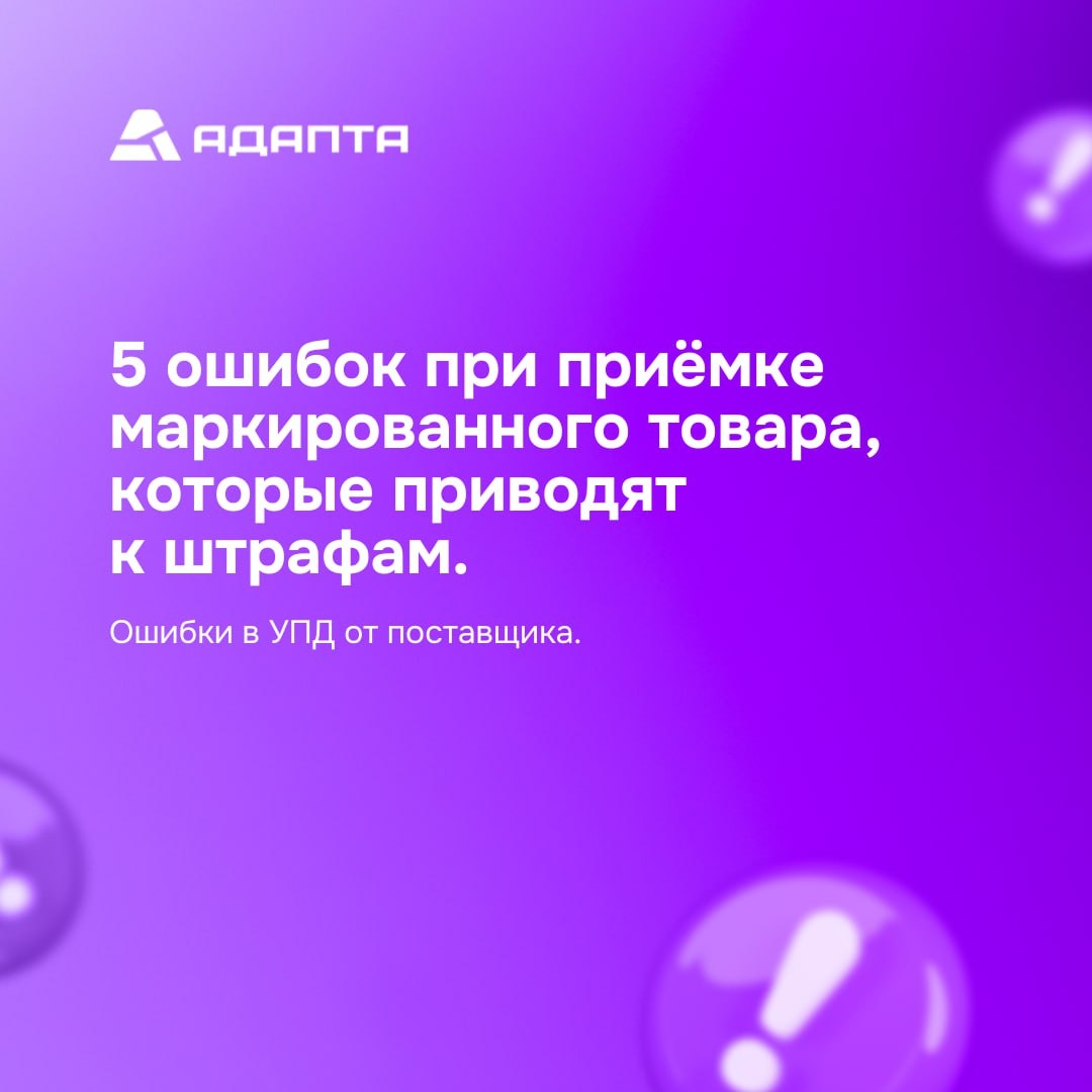 Даже если вы всё делаете правильно, проблемы могут начаться из-за ошибок поставщика в УПД. Чаще всего неверно указывают: • коды маркировки • количество товара • вес или объём • характеристики (размер, цвет и т.д.) 📋 Закон: Постановление Правительства РФ № 515. ❗️Важно: финансовая ответственность ложится на получателя товара. Система маркировки не проверяет корректность данных автоматически. Проверяет и подтверждает всё именно ваша компания. То есть если вы приняли товар с ошибками в УПД и ввели его в оборот — штраф получите вы, а не поставщик. ✅Что делать, если обнаружили ошибки в УПД: 🟣ШАГ 1. Составить акт о расхождениях. Оформляете официальный документ, где фиксируете все несоответствия. Используется форма ТОРГ-2 (стандартный акт о расхождениях). 🟣ШАГ 2. Запросить у поставщика УКД. Поставщик обязан прислать универсальный корректировочный документ (УКД) через систему электронного документооборота (ЭДО), чтобы исправить ошибки в УПД. 🟣ШАГ 3. НЕ принимать товар до исправлен