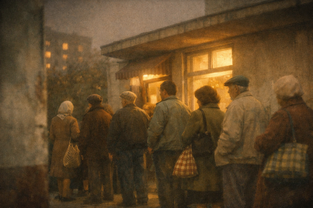 Очередь была разговором. Иногда громким, иногда ворчливым, иногда смешным. В ней обсуждали погоду, дефицит, детей, работу, цены — всё подряд. И если ты стоял долго, то к концу уже знал, кто из соседнего подъезда, кто из другого района, а у кого «сын в армии».
