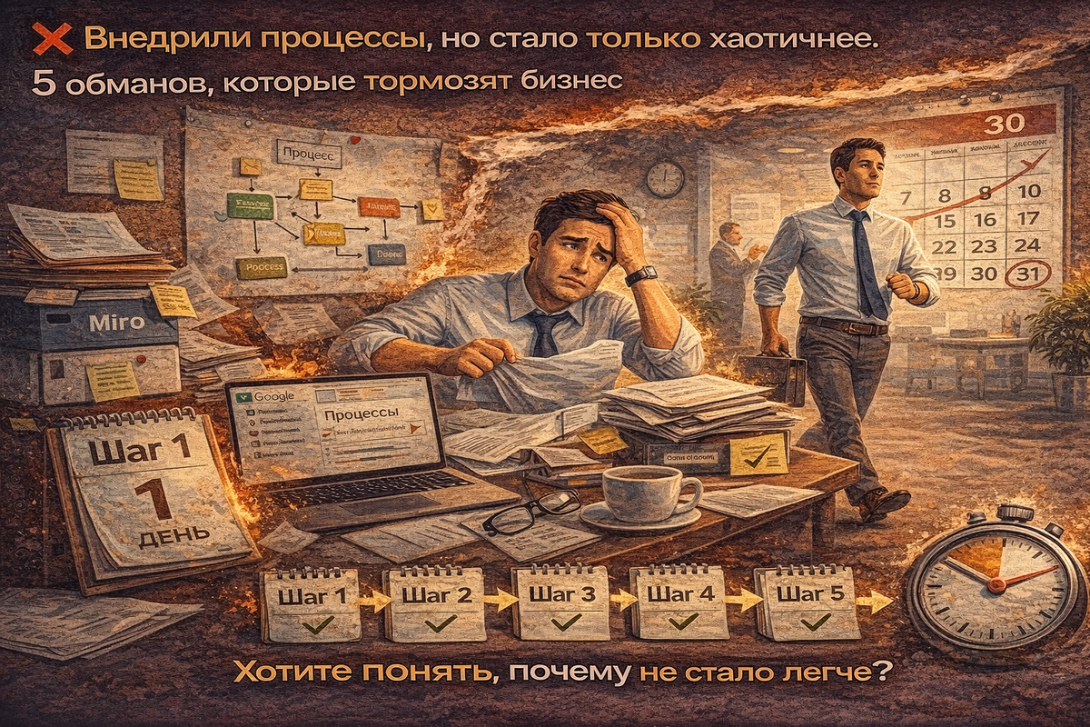 — без вашего участия ничего не движется И внутри крутится мысль: «Мы же внедрили процессы… Почему стало не легче?» Разберёмся честно. Это самый популярный самообман собственника. Процессы не работают сами по себе.