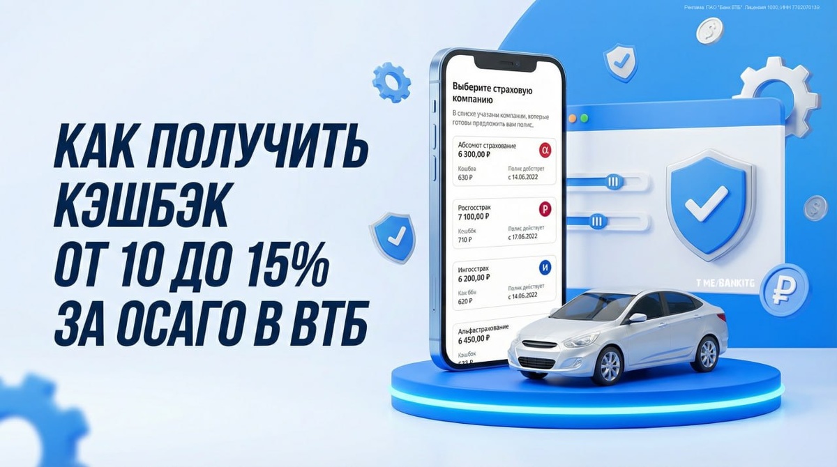 ⚡ В ВТБ продлили акцию для автомобилистов, немного улучшив условия - теперь можно получить до 15% кэшбэк за покупку полиса ОСАГО в МП/ИБ ВТБ Онлайн. ◻️ Если вместе с ОСАГО оформить сервис "Автоэксперт", который включает услуги эвакуации, подвоза топлива, помощь при поломке и т.д на год за 4 000 ₽, то будет положен кэшбэк 15% за ОСАГО. Если без него, то 10%. Условия акции: ▫️ При оформлении через мобильное приложение банка, выбрать можно любую доступную там страховую. То есть, банк выступает на агрегатор. ▫️ Акция для клиентов-физлиц ВТБ, достигших 18 лет. ▫️ Кешбэк начисляется рублями. ▫️ Выплата бонуса на счет карты не позднее конца следующего месяца. ▫️ Срок акции до конца 2026 года. ▫️ Регионы-исключения, где акция не действует: Республика Дагестан, Республика Ингушетия, Карачаево-Черкесская Республика, Республика Северная Осетия – Алания, Чеченская Республика, ДНР, ЛНР, Запорожская и Херсонская область. 🔖 Страница акции; Условия акции (pdf) 🎁 Если еще не клиент ВТБ (без маст