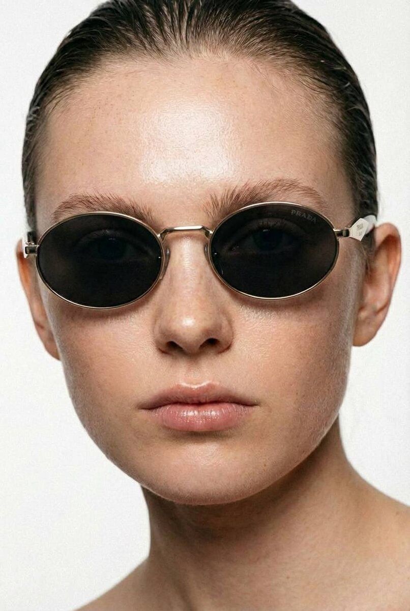 Элегантные овальные солнцезащитные очки овальной формы в металлической оправе с темно-серыми линзами
