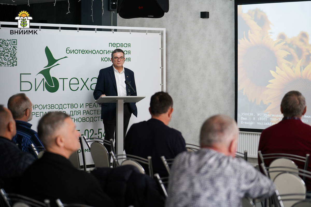 Ежегодная конференция компании «Биотехагро», посвящённая применению микробиологических препаратов в сельском хозяйстве, прошла в Тимашевске 28 января 2026 года. В мероприятии приняли участие ведущие учёные и представители агробизнеса. Основная тема конференции — эффективность биопрепаратов при возделывании ключевых сельхозкультур и экономическая выгода для производителей. В рамках конференции заведующий агротехнологическим отделом ВНИИМК, кандидат сельскохозяйственных наук, доцент Александр Сергеевич Бушнев представил результаты исследований по применению биопрепаратов при возделывании подсолнечника и сои. Применение биологических препаратов положительно влияют на урожайность и масличность семян подсолнечника, инкрустация семян биопрепаратами снижает заражение бактериальной инфекцией на 76–80 %, эффективность обработки растений против бактериоза составляет 23–69 %, против сухой гнили – на 27–60 %. Обработка семян сои инокулянтами увеличивает урожайность с 18,0 до 23,2 ц/га, содержание