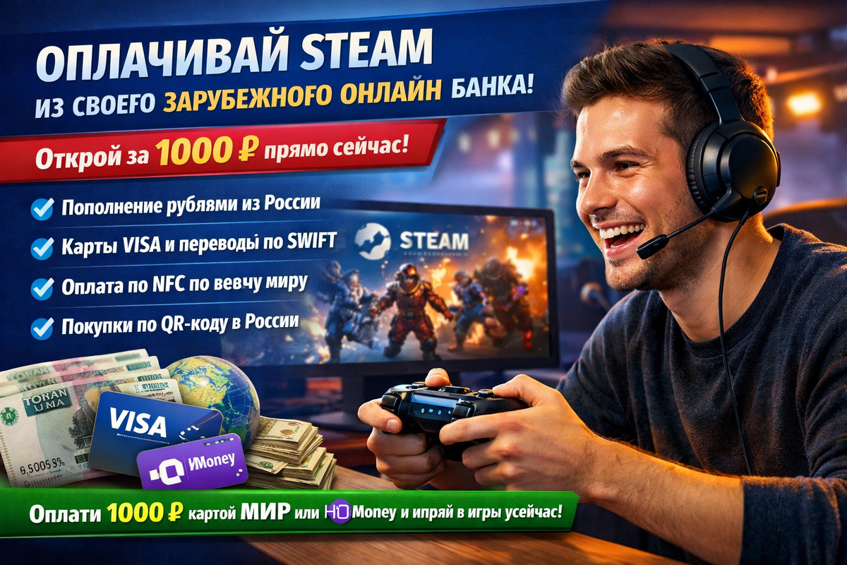 В 2026 году пополнить баланс Steam рублями из России стало настоящим вызовом: прямые платежи ограничены, комиссии съедают бюджет, а рубль продолжает терять в цене. Но есть удобный и выгодный способ — оформить виртуальную зарубежную карту Visa, которую легко пополнять рублями через СБП прямо из России, а затем оплачивать любые покупки в Steam без лишних потерь. Этот метод позволяет пополнять баланс Steam практически без комиссии сервиса (только минимальные банковские издержки), автоматически конвертировать рубли в криптовалюту или стабильные валюты и зарабатывать на курсе. Забудьте про посредников с 5–10% накруткой — здесь всё проще, безопаснее и перспективнее. Оформить такую карту можно за пару минут через надёжный онлайн-банк. Перейдите по ссылке и получите доступ: оформить зарубежную Visa карту. Это удобнее традиционных сервисов (GGPay, BattlePass, МТС Оплата), где комиссии 4–8% + конвертация. Здесь вы избегаете посредников и получаете настоящую финансовую свободу. Хотите попробовать