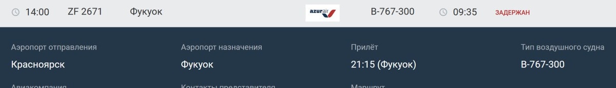 «Пассажиров ZF 2671 Красноярск – Фукуок (Вьетнам) высадили из самолета обратно в аэропорт, задержка рейса уже 4 часа. Говорят, что проблема с двигателем», - рассказал турист. Как пояснили Крыше ТурДома в авиакомпании AZUR air, рейс выполняется на Boeing 767. «С предыдущими задержками это не связано. Техническая проблема носит локальный характер и будет устранена в ближайшее время, инженерно-технический персонал прикладывает для этого максимум усилий. Пассажирам на время ожидания предоставляем все услуги в соответствии с ФАП». По данным онлайн-табло аэропорта Красноярска, вылет отложен с 09:35 до 14:00. Подробнее написали на ТурДоме. @tourdom