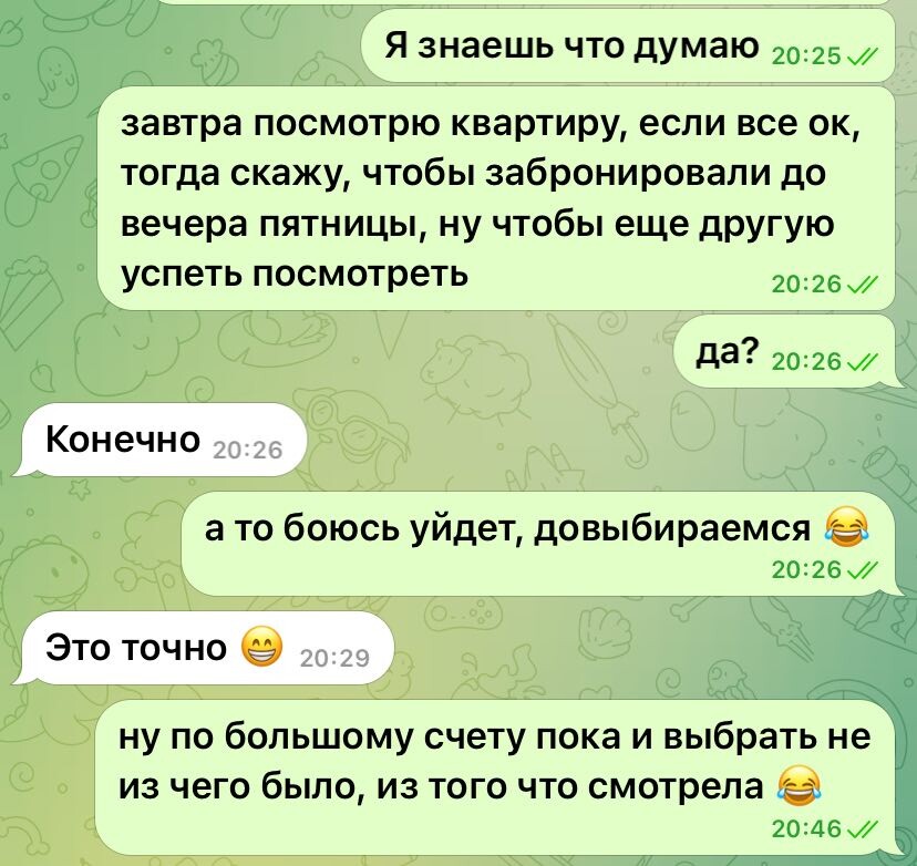 Так я поступала со всеми последними вариантами. Поскольку хорошие квартиры уходили в момент, иной раз даже о просмотре не удавалось договориться, я решила попробовать другую тактику. Не изучать часами объявления, а тупо успеть записаться на просмотр. И там уже на месте разбираться.