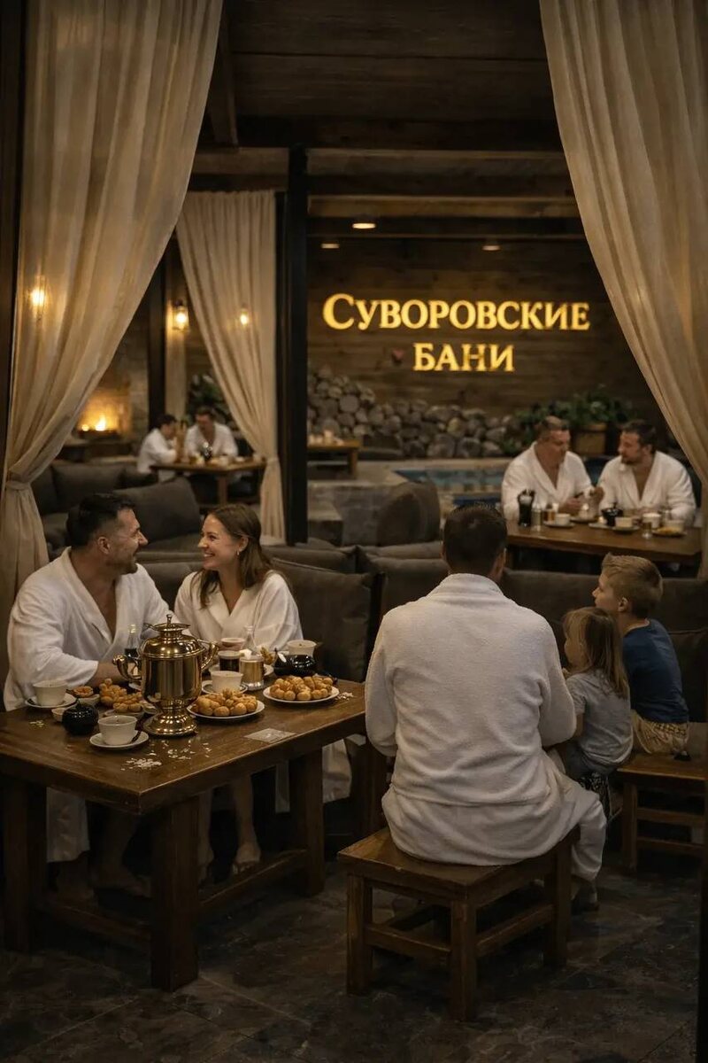 На мой взгляд, это идеальное место для семейного отдыха. Просторно и одновременно уютно, идентично и по-банному стандартно, вкусно и никакого алкоголя. Контингент соответствующий. А ещё, там разные по формату общие парилки: каменная и липовая. Для меня идеальный формат, который однажды сильно огорчил… Большая и охраняемая парковочная территория: оставил машину и не боишься эвакуаторов, как в «Трёх богатырях». (https://t.me/zhmutski/6709) Там же на территории есть неплохая автомойка, можно при необходимости совместить приятное с полезным. Всегда тактичный и приветливый ресепшен, администратор лично провожает до зоны отдыха. Весь банный ассортимент комплектующих имеется, но всё своё не возбраняется. Обязательно плавки или шорты, халаты тоже приветствуются, так как территория везде МЖ (кроме раздевалок). Они, кстати, тоже просторные, чистые и укомплектованные всем необходимым. Персональные кабинки из деревянных каркасов обтянутых тканевыми перегородками. Легко, приватно, комфортно и прост