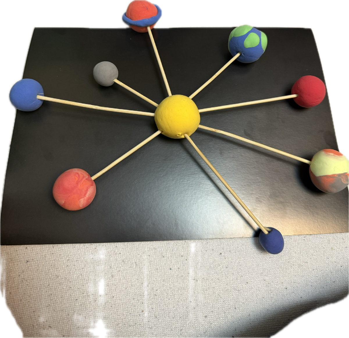 Поэтому ворвалась в учету со знаниями. Тут ещё задание было на сегодня - сделать макет Солнечной системы. Мы придумали, и дочка воплотила идею в макет.