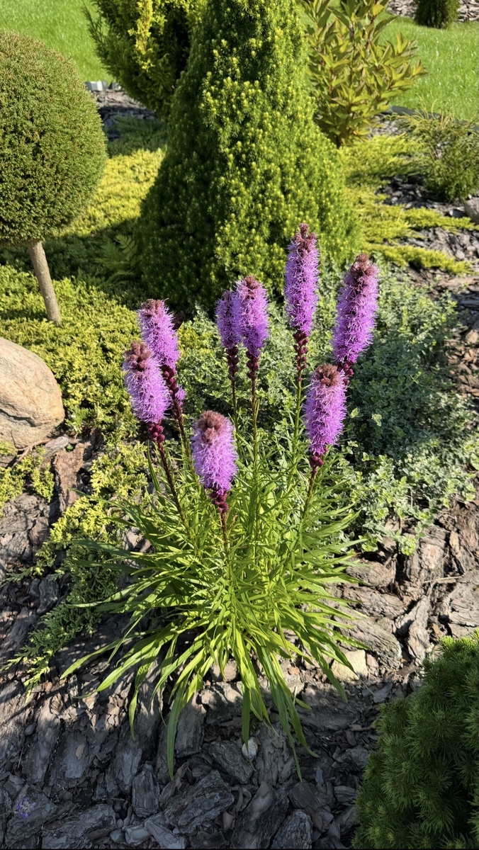 Лиатрис очень декоративен и эффектен. Во второй половине лета он вспыхивает яркими фиолетовыми «свечками», которые сразу привлекают внимание.