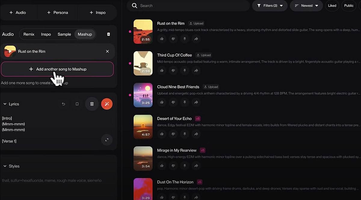 🎶🔥 Suno Mashup теперь позволяет впихнуть Бетховена в трек Оксимирона и получить нечто, что заставит плакать даже Siri 😭🎧. Берёшь две песни, кидаешь их в цифровую центрифугу и получаешь трек 🏙🎹. Фича пока в бета-режиме, но уже доступна бесплатно — никаких подписок, никаких «купите Pro, чтобы услышать второй аккорд». Просто заходишь, выбираешь два трека (или генерируешь их через Suno), жмёшь «Mashup» — и бац: у тебя на выходе гибридный хит, который может стать саундтреком к твоему следующему мему или TikTok-выходу уровня «я не пьян, я просто в режиме эксперимента» 🧪💃. Хочешь, чтобы «Karma Police» Radiohead читала русский drill? Или чтобы «Калинка-Малинка» звучала как лоу-фай бит из Бруклина? Suno Mashup говорит: «Погнали, бро» — и делает это за секунды. А главное — без DRM, без водяных знаков, без «мы сохраним ваш голос для обучения». Просто чистый, дикий, безумный креатив 💥. ПОЧЕМУ ЭТО КРУТО? 🤯 Потому что Suno Mashup ломает четвёртую стену музыки. Раньше, чтобы сделать нормал