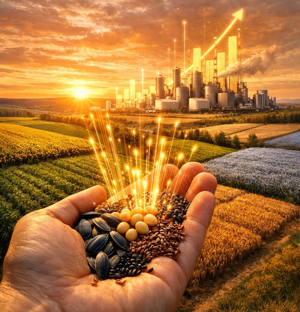 Российский рынок масличных культур демонстрирует устойчивый рост и формирует долгосрочный потенциал развития. В 2026 г. совокупный валовой сбор подсолнечника, сои, рапса и масличного льна в России может достичь порядка 34 млн т. Дополнительным фактором развития отрасли станет ввод новых перерабатывающих мощностей совокупным объёмом до 1,5 млн т. Об этом на Первом Поволжском масличном форуме рассказал заместитель руководителя Центра отраслевой экспертизы (ЦОЭ) Россельхозбанка Олег Князьков. Впервые в истории совокупный валовой сбор масличных культур превысил 33 млн т., включая масличный лён, который практически полностью ориентирован на экспорт. Развитие масложировой отрасли поддерживается высоким экспортным спросом, расширением переработки и ростом технологичности производства. По предварительным оценкам, уровень самообеспеченности России по ключевым масличным культурам значительно превышает внутренние потребности: подсолнечник (в пересчёте на масло) – 278%, соевые бобы – 122%, рапс