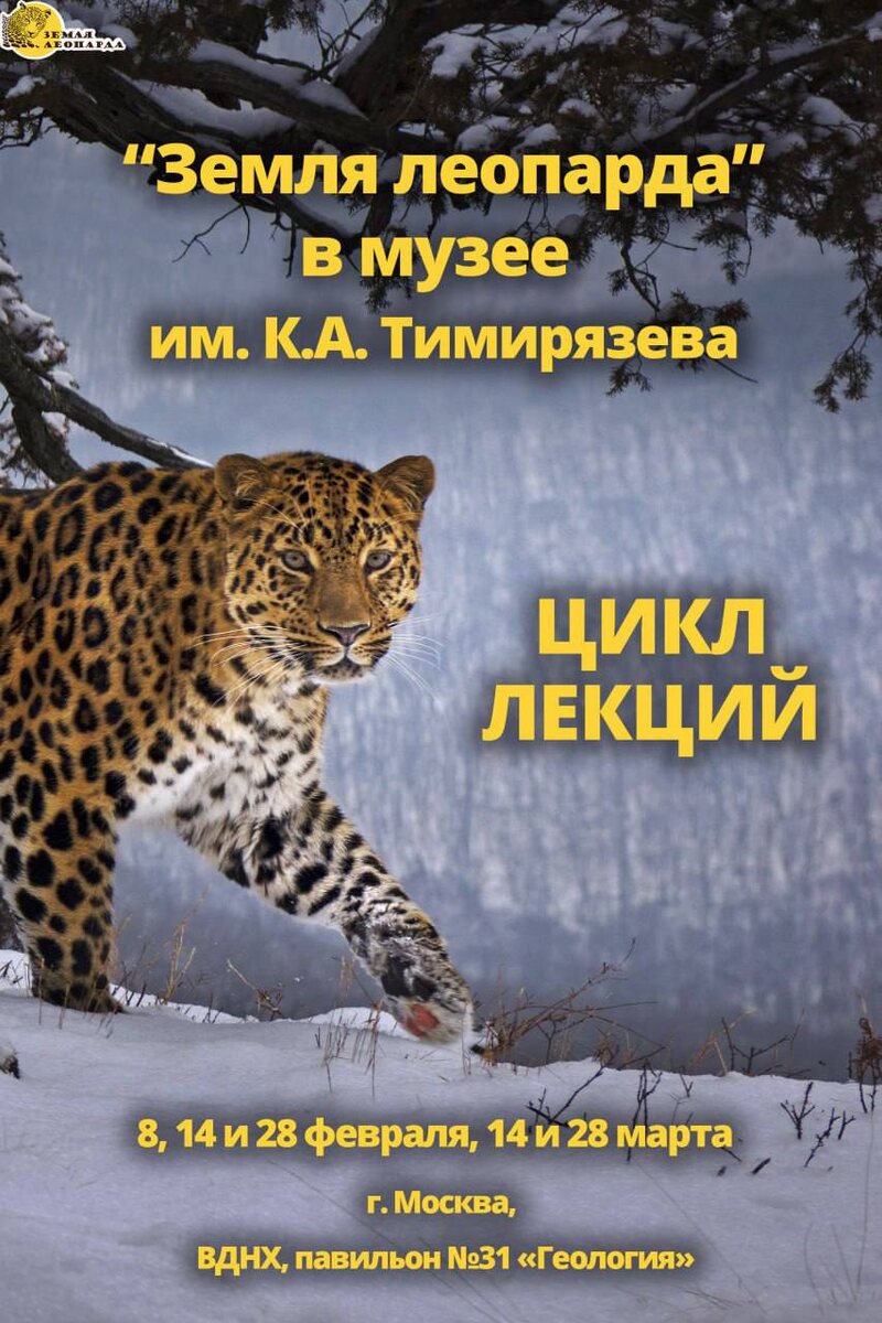 К.А. Тимирязева в Москве. Каждая территория дирекции заповедников «Земля леопарда» – это отдельный захватывающий сюжет, и каждой из них в рамках цикла будет посвящена специальная лекция. 🟡Лекция «Дальневосточный леопард и его дом» ⏰14 февраля в 13:00 ▶️Лекция познакомит гостей с историей самой редкой крупной кошки мира, её средой обитания и перипетиями её спасения от исчезновения. 🟡Лекция «12 символов Земли леопарда» ⏰ 28 февраля в 13:00 ▶️Лекция пройдет в рамках эколого-просветительского проекта и познакомит с енотовидной собакой. Также в фокусе внимания будет старейший заповедник Дальнего Востока «Кедровая падь». 🟡Лекция «В гостях у нерпы: звёзды Дальневосточного морского заповедника» ⏰ 14 марта в 13:00 ▶️На лекции раскроется «самая морская» история заповедного Приморья, предусмотрен просмотр уникальных подводных съёмок с обитателями Японского моря. 🟡Лекция «Реликтовый лес Уссурийского заповедника» ⏰ 28 марта в 13:00 ▶️Лекция, посвящённая Уссурийскому государственному запове