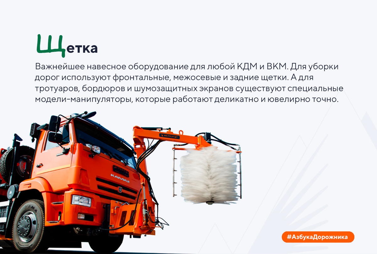 По букве «Щ» в нашей азбуке дорожников не было никаких сомнений! Сегодня мы говорим про щетку – важнейшее навесное оборудование для любой КДМ и ВКМ. Правильный выбор щетки напрямую влияет на качество уборки, срок службы оборудования и ваш бюджет. Какие они бывают? Все зависит от задачи. Для уборки дорог используют фронтальные, межосевые и задние щетки. А для тротуаров, бордюров и шумозащитных экранов существуют специальные модели-манипуляторы, которые работают деликатно и ювелирно точно. Полный спектр решений можно увидеть в нашем каталоге: https://merkatorgroup.ru/equipment/navesnoe-oborudovanie/shchetochnoe-oborudovanie/ Из чего делают щетку? И здесь все решает задача. Полипропилен – универсальный солдат для большинства работ. Металлический ворс нужен для агрессивной борьбы со льдом и уплотненным снегом, а летом – для среза сорняков вдоль бордюров. А для самой бережной уборки, где нельзя оставить ни царапины, используют нейлон, например, при уборке шумозащитных экранов. На что смотре