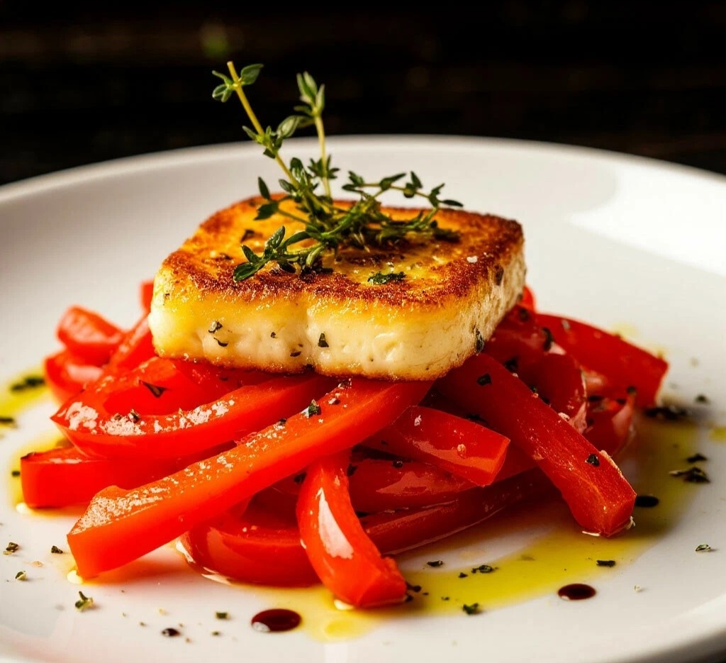Мяу, мои любители дымных ароматов и контрастных текстур! 😺🔥 Сегодня у нас салат, который готовится почти без усилий, но дарит потрясающий вкус! Это печёный сладкий перец с хрустящим обжаренным сыром в панировке. Представьте: нежная, сладковатая, ароматная мякоть перца и горячий, тягучий внутри и хрустящий снаружи сыр... Это простой, но очень эффектный салат, который удивит гостей и порадует вас! 🫑🧀