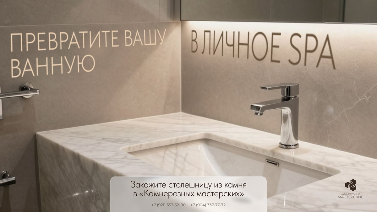Ванная комната перестала быть просто помещением для гигиены. Сейчас это полноценное пространство для отдыха и расслабления, почти домашнее SPA! Поговорим, почему столешница из камня — не только про роскошь, но и про практичный расчет, какой материал выдержит атаку косметики и почему натуральный мрамор требует больше внимания, чем его искусственные аналоги. Выбор материала для ванной комнаты — всегда баланс между эстетикой и готовностью к уходу. В «Камнерезных Мастерских» мы работаем с обоими запросами, и вот что важно знать перед покупкой. Каждая столешница из природного камня — это уникальный отпечаток природы. Второго такого рисунка просто не существует. Чаще всего столешницы изготавливают из мрамора, гранита, оникса и травертина. Мрамор всегда прохладный на ощупь и обладает глубиной, которую не имитирует ни один пластик. Мрамор, как натуральный материал, по-настоящему дышит, он экологичен, но капризен: боится кислот и ярких красителей (например, краски для волос или агрессивной быто