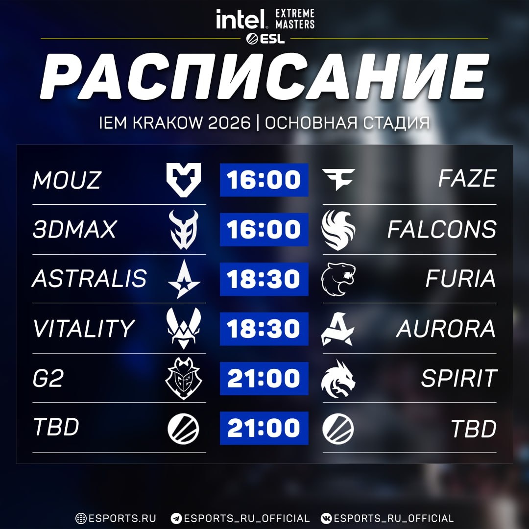 🇸🇦 Расписание сегодняшних игр на IEM Krakow 2026