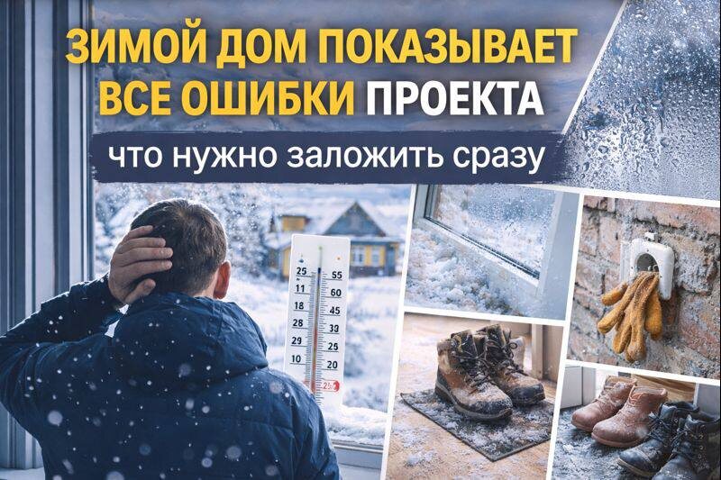 История первой зимы в своём доме Пишу это, сидя у окна с кружкой чая. За окном −23, котёл работает почти без остановки, а я второй месяц мысленно перепроектирую свой дом. Мы заехали осенью — счастливые, гордые, уверенные, что всё продумали. Проект был, строители нормальные, денег потрачено как положено. И только зима честно показала, где мы себя обманули. Хочу рассказать не теорию, а то, с чем столкнулся лично. Может, кому-то это сэкономит нервы и сотни тысяч. Летом всё выглядело логично: В морозы выяснилось: Если бы сейчас проектировал заново, первым делом заложил бы: В проекте было: «Разводку вентиляции решим по месту». По месту мы решили сэкономить. И вот итог первой зимы: Сейчас понимаю: вентиляция — не опция, а часть проекта дома. Как фундамент или крыша. Мы сделали их «для комфорта», но: Потому что никто не просчитал: Зимой ногами чувствуешь то, что на чертежах не бросалось в глаза. Самое больное место — откосы и примыкания. В −20 выяснилось: В проекте этих узлов просто не было.