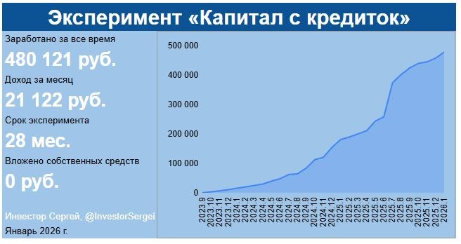 Итоги эксперимента «Капитал с кредиток» за прошедший месяц, в котором зарабатываю полностью на заемные деньги В предыдущем посте был обзор за весь 2025 год. Ну а сегодня итоги первого месяца нового года. Тема жива и продолжает приносить доход буквально из воздуха. Напомню, что в сентябре 2023 года завел первую в жизни кредитку. А сегодня орудую арсеналом карточек, которые позволяют получать доход за счет заемных средств. За это время сколотил капиталец больше 480 000 руб., который уже приносит дополнительный доход. Действую по следующей схеме: 1️⃣ Получаем в банке кредитку с беспроцентным периодом. 2️⃣ Снимаем доступные средства. 3️⃣ Размещаем на накопительных счетах в банке под высокий процент. 4️⃣ К концу беспроцентного периода долг возвращаем на кредитку. 5️⃣ Заработанные деньги оставляем себе. Если использовать несколько карт, применять разные хитрости и вкладываться не только в депозиты, но и в другие финансовые инструменты, то можно существенно повысить доход. С начала экспериме