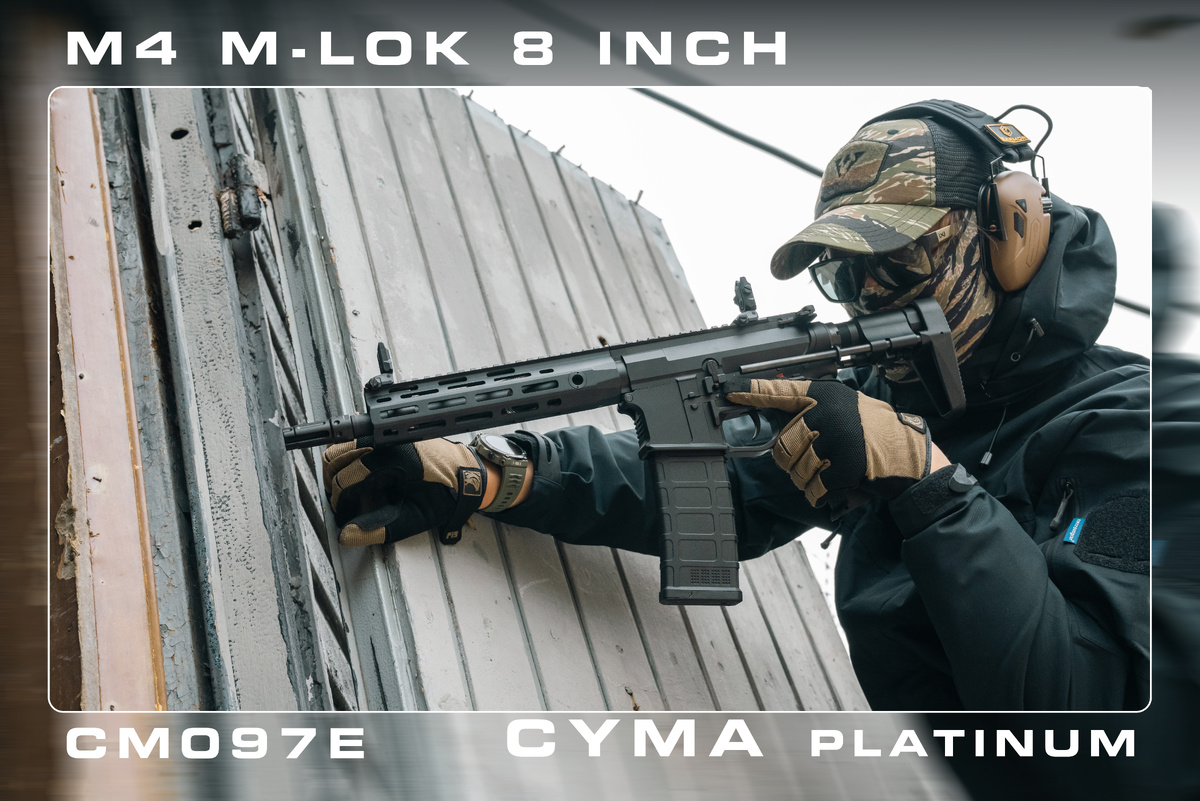 В страйкболе часто встречают по одежке: чем больше обвеса, тем круче кажется привод. Но опытные игроки знают: главное — то, что скрыто внутри гирбокса. Сегодня у нас на обзоре «малыш» Cyma M4 CM097E из линейки Platinum. Почему на него стоит обратить внимание, если вы ищете идеальное оружие для CQB? Давайте разбираться. Снаружи это современная классика AR-15. Никаких лишних маркировок, строгий черный цвет. Компактность: Короткое цевье и телескопический приклад на рельсах (PDW-style) делают его невероятно удобным для работы в зданиях и узких коридорах. Эргономика: Интерфейс M-Lok позволяет повесить рукоятку или фонарь именно там, где удобно вам, не перегружая автомат лишним весом. Самое интересное начинается, когда мы говорим о «внутрянке». Cyma Platinum — это не просто бюджетный Китай, это серьезная заявка на победу прямо из коробки: Проводка (Т-коннектор) выведена вперед, в цевье. Места там немного, поэтому мы рекомендуем сразу обзавестись имитацией блока AN/PEQ («анпек»). Это позволит