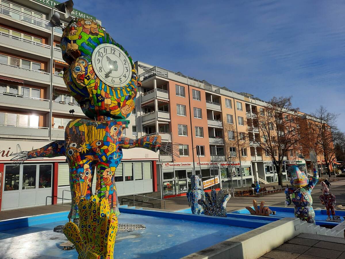 Город Франкфурт-на-Одере в Восточной Германии удивляет местных жителей и туристов обилием оригинальных скульптур. И сказочных фонтанов. Две основные фонтанные достопримечательности восточного Франкфурта – готичные Семь Воронов и разноцветный Комик-Бруннен. Про Семь воронов я уже рассказывала, а второй тоже достаточно известен. Любой житель города его охотно вам покажет. И туристы отмечаются у этой достопримечательности. Но, как часто бывает, широкая известность затмила истинную суть. Этот фонтан сделал в 2000 году Майкл Фишер-Арт, мастер городских инсталляций и экспериментальных креативов. И дал ему красивое поэтическое название: Der Osten leuchtet – Светится восток. По замыслу художника, фонтан приветствует восходящее солнце, которое озаряет своим светом мир, расцвечивая его радостными красками. Под этим названием его знали жители Франкфурта. И Восточная Германия. А вот в западных туристических проспектах достопримечательность обозначена просто: Комик-Бруннен, Смешной фонтанчик. А ино