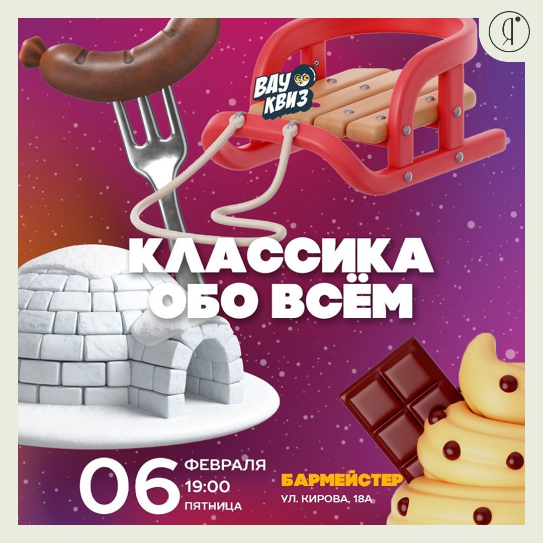 Обо всём #Вечером #Квизы Что будет? Всё, что делает нас эрудитами и интересными собеседниками! Поговорим об искусстве и науке, о традициях и современных трендах, о природе и технологиях. Разомнемся на логических загадках в картинках, включим интуицию и командную логику, вспомним хиты и киноцитаты. Музыка, кино, география, кулинария - ни одной сферы не оставим без внимания! Этот квиз - как генеральная уборка для памяти: выбросим всё лишнее, расставим знания по полочкам и наполним голову новыми интересными фактами. Хотите попробовать? 6 февраля | 19:00 «Barmeister», Кирова, 18А 600 руб. +79644180983 Online Якутия | Ждем вас в МАХ