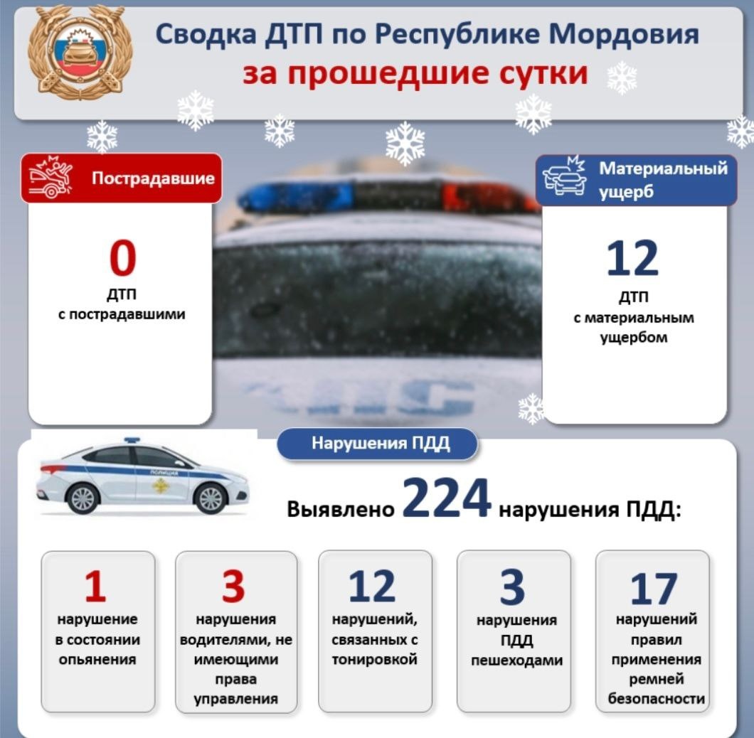🚔 ГАИ Мордовии: 2 февраля 2026 года на дорогах республики не зарегистрировано ни одного ДТП с пострадавшими в них людьми