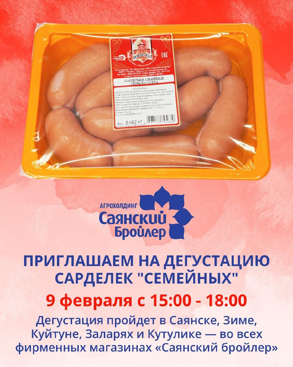 » 🗓 9 февраля ⏰ с 15:00 до 18:00 📍 Саянск, Зима, Куйтун, Залари и Кутулик — во всех фирменных магазинах «Саянский Бройлер» Приходите попробовать нашу новинку и оценить вкус лично. Сардельки «Семейные» — это: — нежная текстура и мягкий сливочный вкус (в составе — сливочное масло); — универсальный вариант для семейных завтраков, ужинов и быстрых перекусов. Будем рады видеть вас на дегустации! Приходите, пробуйте и делитесь впечатлениями 🤍