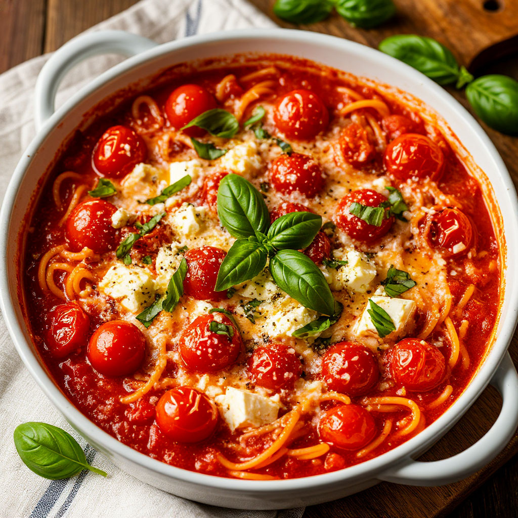 Горячие макароны переложите прямо в форму с запечёнными томатами и фетой. Аккуратно перемешайте — пусть сыр частично растает, а соус равномерно распределится. Если масса кажется суховатой — добавьте 1–2 ст. ложки воды от макарон. 6. Подавайте сразу