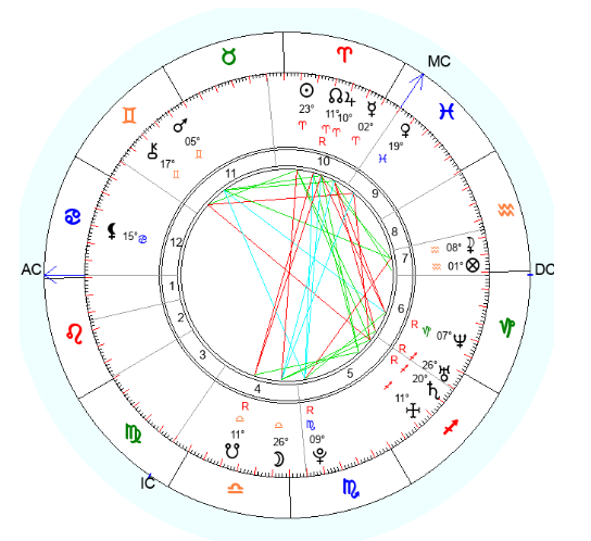 Марс у нас в трине к Селене в Водолее, 11-7, от них идут секстили к Раху на Юпитере в дом карьеры и общественного статуса. Довольно гармоничный Марс, а вот Венера нуждается в постоянной поддержке: имеет квадраты от Сатурна и Хирона.