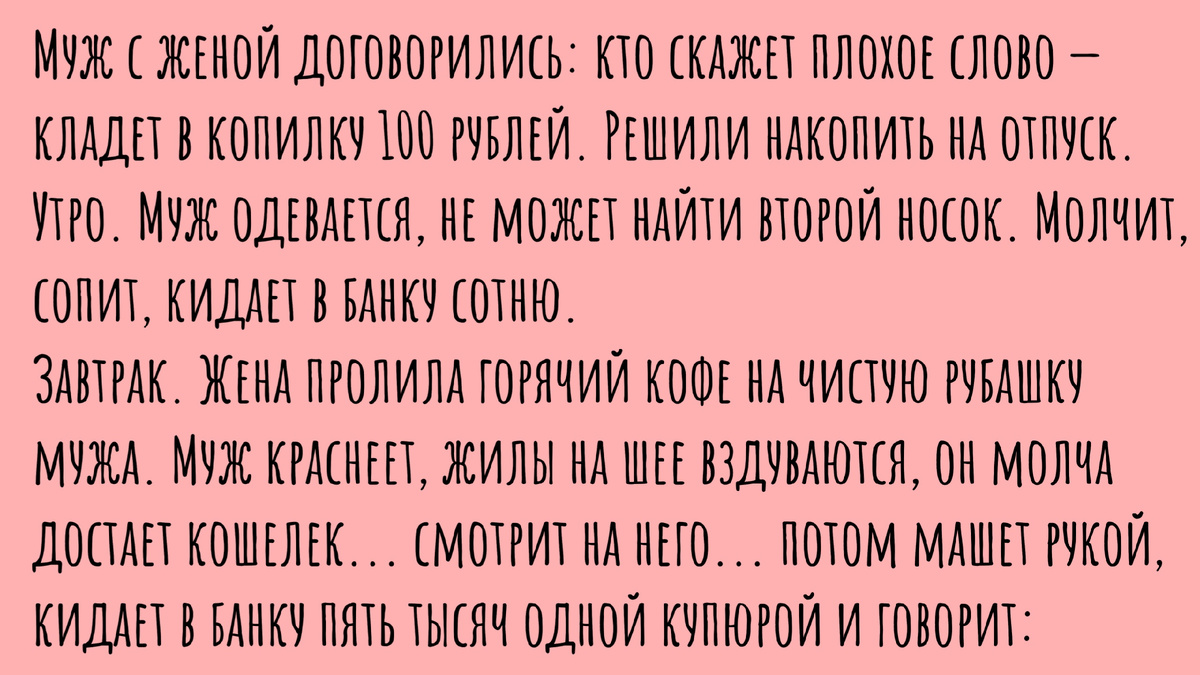 Экономика должна быть экономной, но нервная система дороже! Я считаю, этот мужик поступил как настоящий стратег. Он просто купил себе "абонемент" на свободу слова. Это как "безлимит" у мобильного оператора. Зачем платить за каждую минуту разговора (или за каждое слово), если можно заплатить фиксированную сумму и ни в чем себе не отказывать? Пять тысяч рублей за возможность высказать всё, что накипело — это, я вам скажу, очень выгодная инвестиция в психическое здоровье. К тому же, если посчитать, сколько денег уходит на психологов, то такая "банка мата" — это просто бюджетный вариант семейной терапии. Главное, чтобы копилка не треснула от накала страстей раньше времени.
