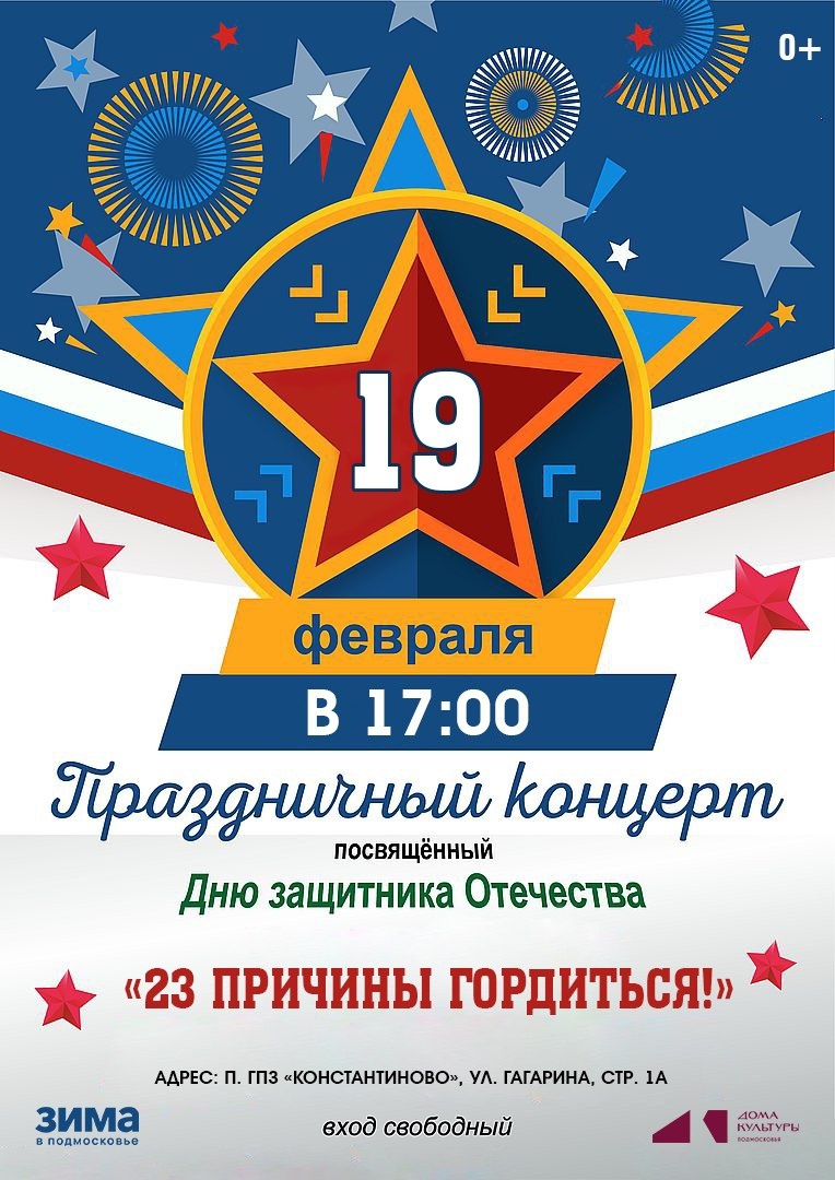 ✨ 19 февраля в 17:00 в Константиновском СДК состоится праздничный концерт, посвящённый Дню защитника Отечества