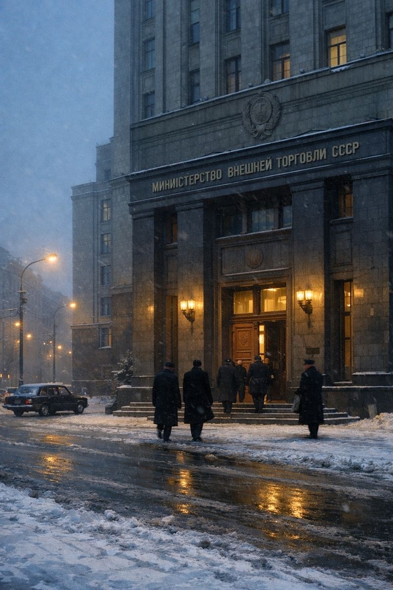 Зимой 1971 года в Москве стояли сильные морозы, но город жил привычной жизнью, за которой скрывалась работа, о которой не говорили вслух. В здании на Калининском проспекте, где располагалось Министерство внешней торговли СССР, каждое утро начиналось одинаково: пропуска у входа, лестницы, коридоры с линолеумом, кабинеты с тяжёлыми дверями и запахом бумаги.