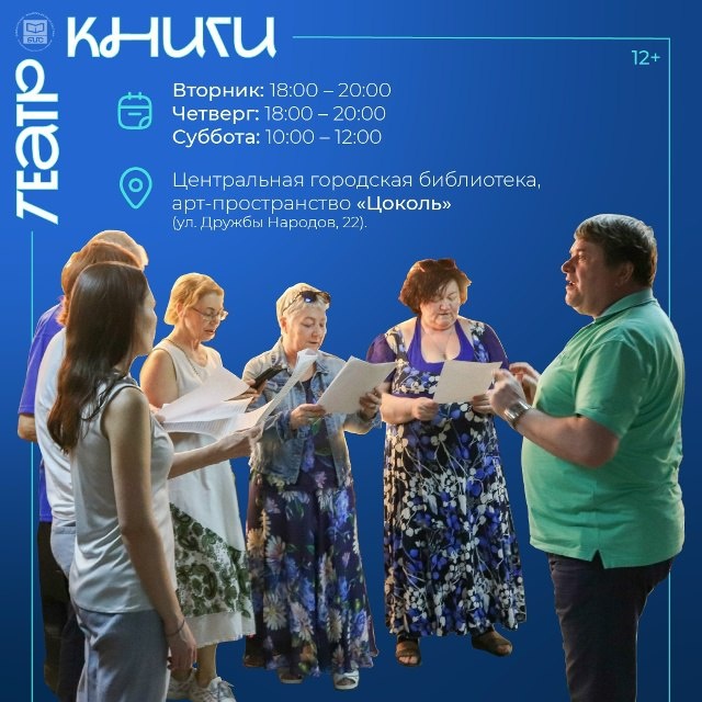 Да-да, прямо в уютном арт-пространстве центральной библиотеки кипит своя театральная жизнь! Наш клуб «Театр Книги» — это место, где строки из пьес оживают, а герои обретают голос и характер. ✨ Только представьте: Вы разбираете роль «по полочкам», ищете нужную интонацию, учитесь говорить не только словами, но и взглядом, жестом. Вы — часть команды, которая из реплик и эмоций собирает целый мир на сцене. А потом — зал, тишина, внимание и аплодисменты! А руководит процессом Василий Петрович Остривной — заслуженный деятель культуры, кандидат педагогических наук, человек, который знает о театре всё и умеет раскрыть талант в каждом. Заинтересовали? Тогда ждём вас! 🗣 Это для вас, если вы: • Любите книги и истории; • Мечтали хотя бы раз выйти на сцену; • Хотите раскрыть свой артистизм; • Ищете творческую компанию и новое увлечение. Опыт не обязателен! Только желание. Мы всему научим в теплой, дружеской атмосфере. 📅 Расписание: Вторник: 18:00 – 20:00 Четверг: 18:00 – 20:00 Суббота 10:00 – 12: