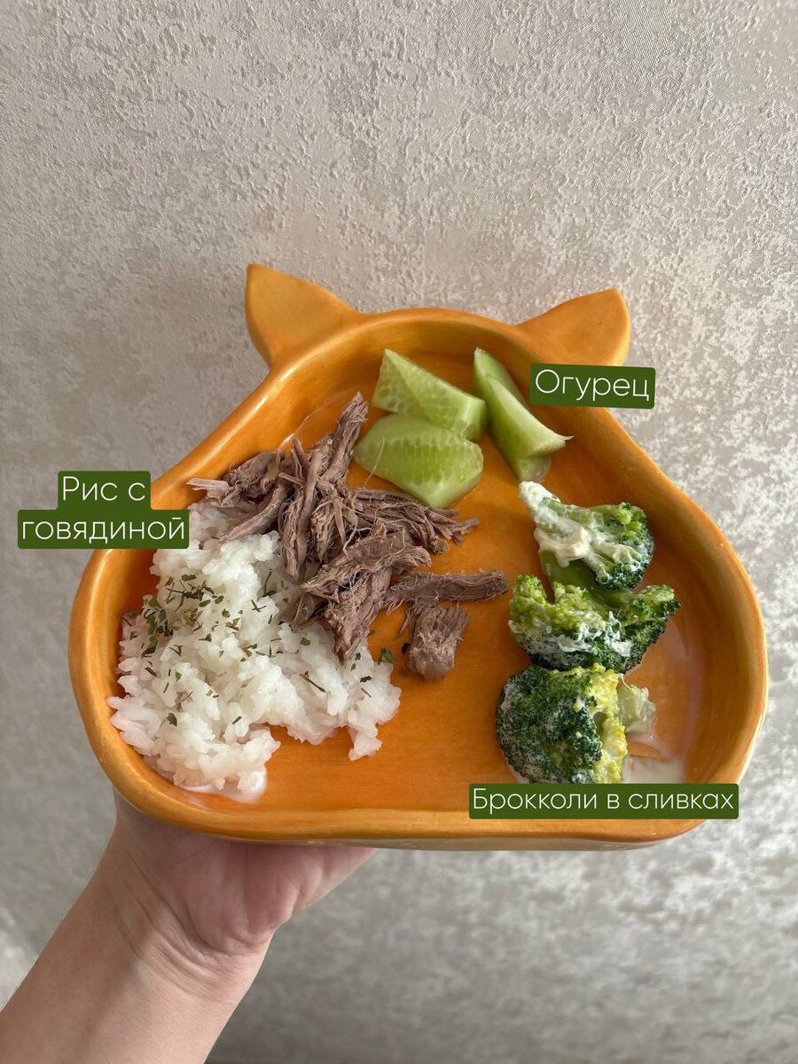 ✨ Обед Сначала сказала «Фу, бее», а потом «положи еще» 😂 Делитесь своими тарелочками ⬇️ ➡️Перейти в МЕНЮ #белочкатарелочка #прикорм #самоприкорм #тарелочка