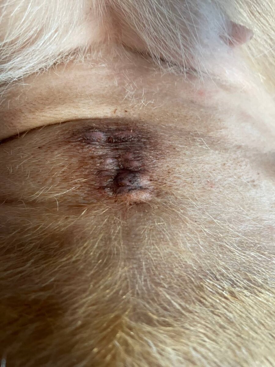 ❓Пигментация (потемнение кожи) в области послеоперационного шва у собак — часто встречающееся и обычно безобидное явление, связанное с