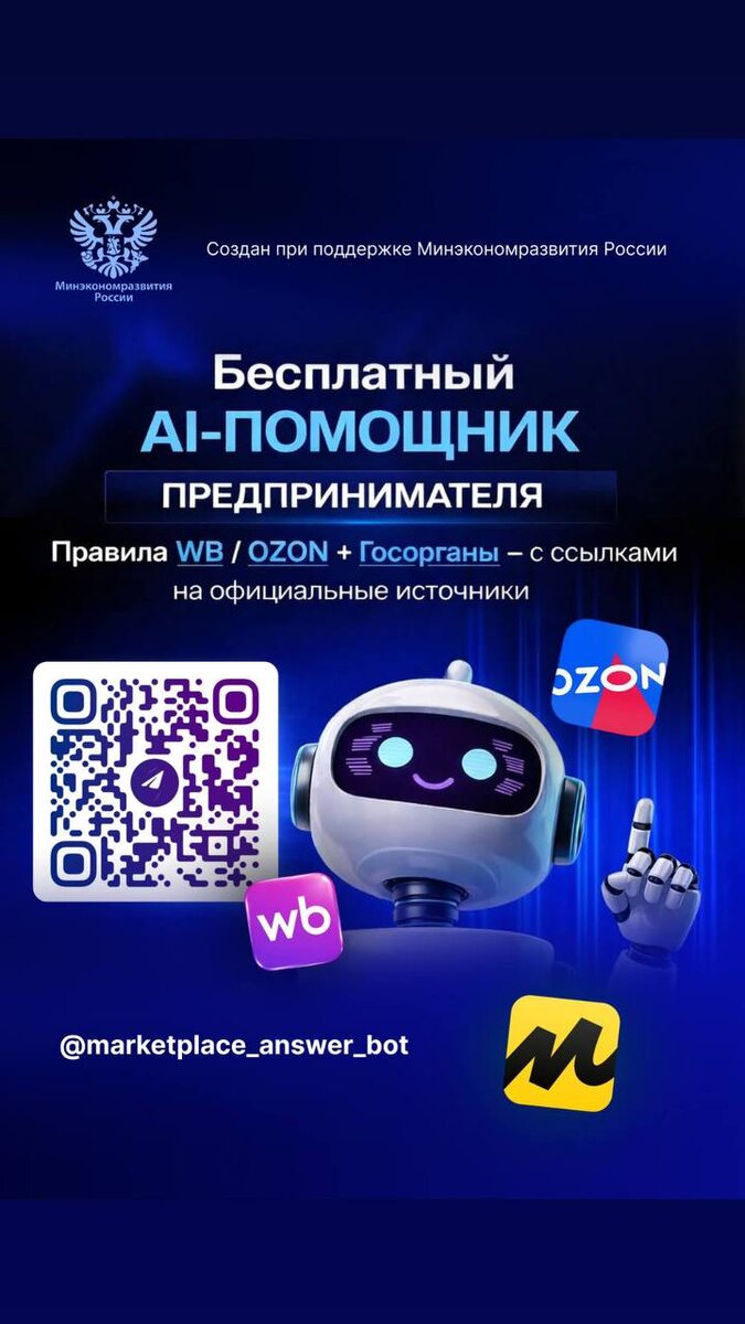При поддержке МИНЭК в России запущен новый инструмент цифровой поддержки бизнеса. Министерство экономического развития ввело в эксплуатацию AI-ассистента для предпринимателей, работающих на маркетплейсах. Этот шаг направлен не только на упрощение доступа к нормативной информации, но и на создание условий для устойчивого развития онлайн-торговли, повышения качества обслуживания клиентов и роста эффективности бизнеса. Ссылка на полную версию статьи. Ссылка на Бот @marketplace_answer_bot