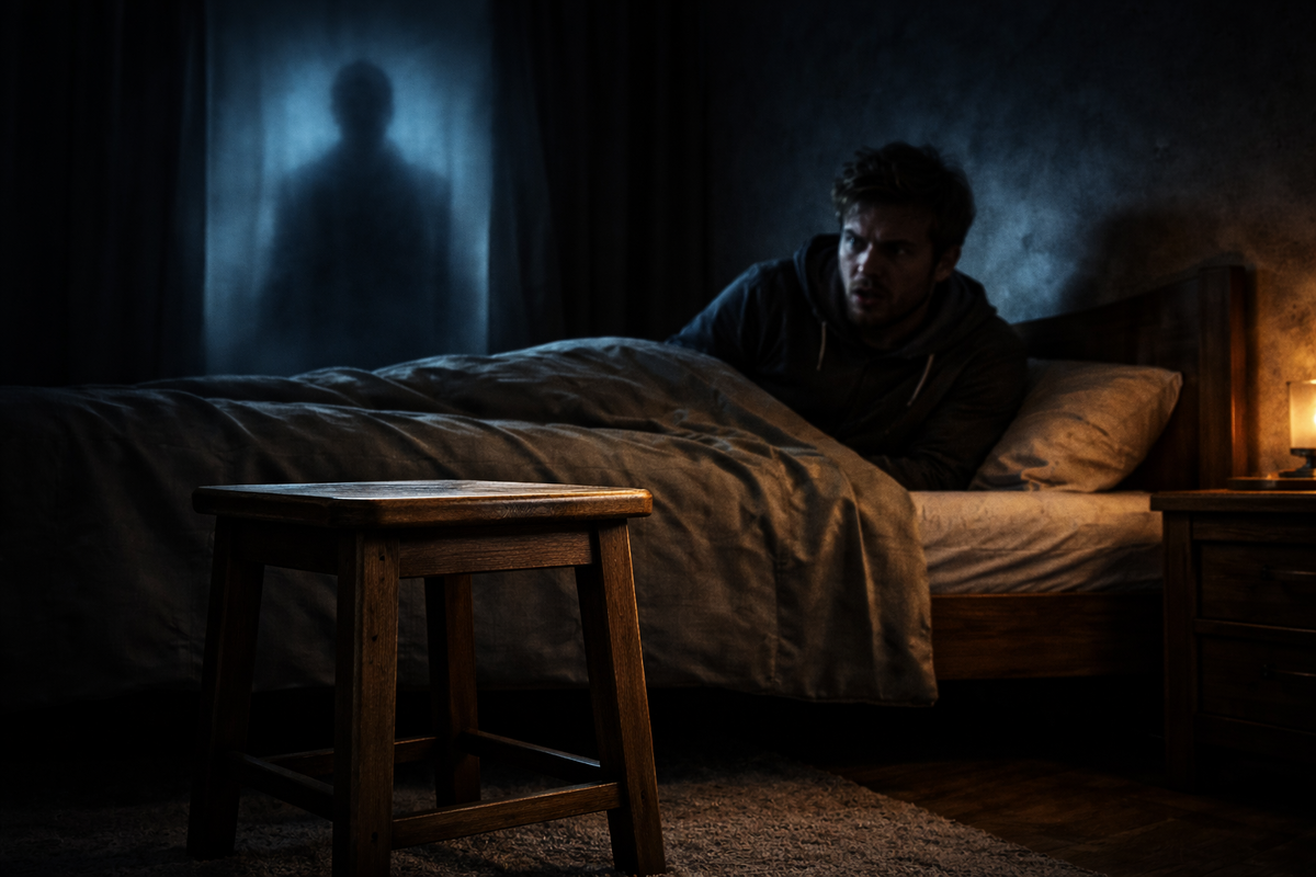 Тут и пришла мысль, от которой стало неприятно: табурет не “двигается”. Он повторяет маршрут. Кухня — дверь — кровать. Как если бы кто-то раньше вставал ночью, переносил его ближе и сидел — долго, молча, без лишних звуков.